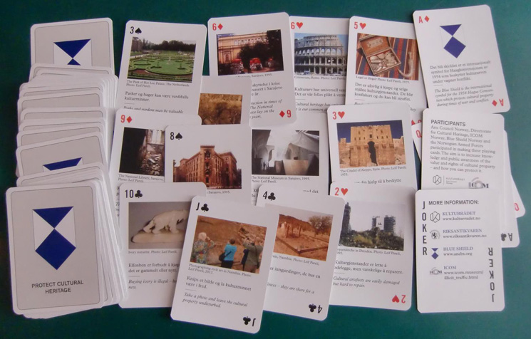 Blue Shield Norge har i 2012-13 deltatt i å produsere en kortstokk med informasjon om kulturarv og hvordan den kan beskyttes mot skade, ødeleggelse og plyndring. Hvert kort har en tekst på norsk og engelsk og et tilhørende bilde, som dreier seg blant annet om hvordan kulturarv kan beskyttes i krigssituasjoner. Hensikten er å øke kunnskap og bevissthet om kulturarvens betydning, og gi informasjon om hvordan hver enkelt kan bidra til å beskytte kulturarv mot ødeleggelse, eller å forhindre plyndring, smugling og ulovlig handel med kulturarv. Kortstokken er spesielt rettet mot norske militære mannskaper som deltar i internasjonale operasjoner, men vil også bli utdelt blant turister til strøk der ulovlig handel med kulturarv er utbredt, og i andre sammenhenger. Kortstokken er produsert i et samarbeid mellom Norsk ICOM, Blue Shield Norge, Norsk Kulturråd, Riksantikvaren og Forsvarets Høyskole.